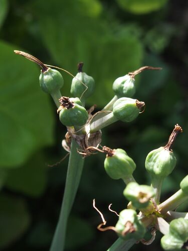 今年の我が家の庭には、ナツズイセンの花茎が20本以上がりました。 ヒガンバナの仲間の中でも大きめで、百合のように豪華な花。 花の咲いた後、実が膨らんできました。 あれ、ナツズイセンはヒガンバナと同様に三倍体。減数分裂がうまくいかないので、種はで…