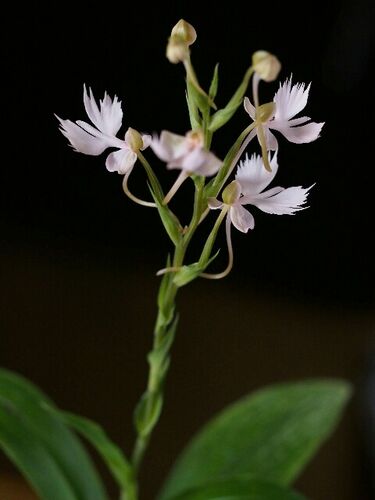 一泊の旅行に出かける前、一輪だけ開花したひむかサギソウ。 帰ってきたら三輪咲いていて、この後、四輪めも咲きました。