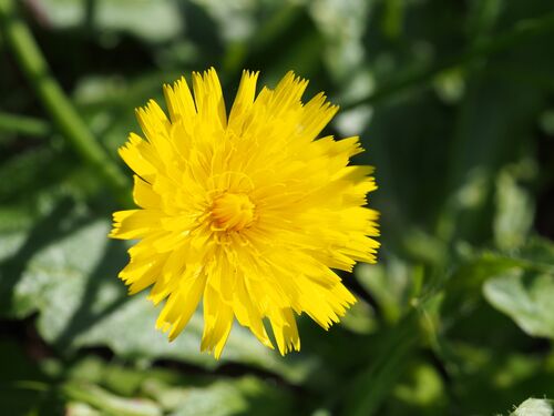 カントウタンポポに小さなハナアブが。 コンデジなのでピントが甘いのはご容赦いただき拡大してみると・・・ フタホシヒラタアブ(ハエ目ハナアブ科)の雄ではないでしょうか? ハエやアブは、4枚ある翅のうち後翅2枚が退化しほとんど見えないため、昔は「…